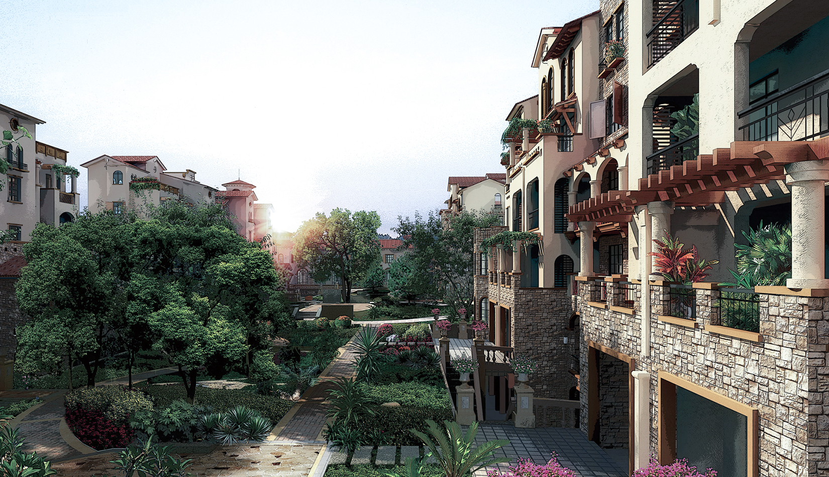 花園洋房“戶戶有故事、層層有退臺(tái)”營(yíng)造出一個(gè)亦靜亦動(dòng)、休閑而浪漫的濱海坡地小鎮(zhèn)的生活氛圍,也體現(xiàn)了該組團(tuán)的和諧與人文環(huán)境。