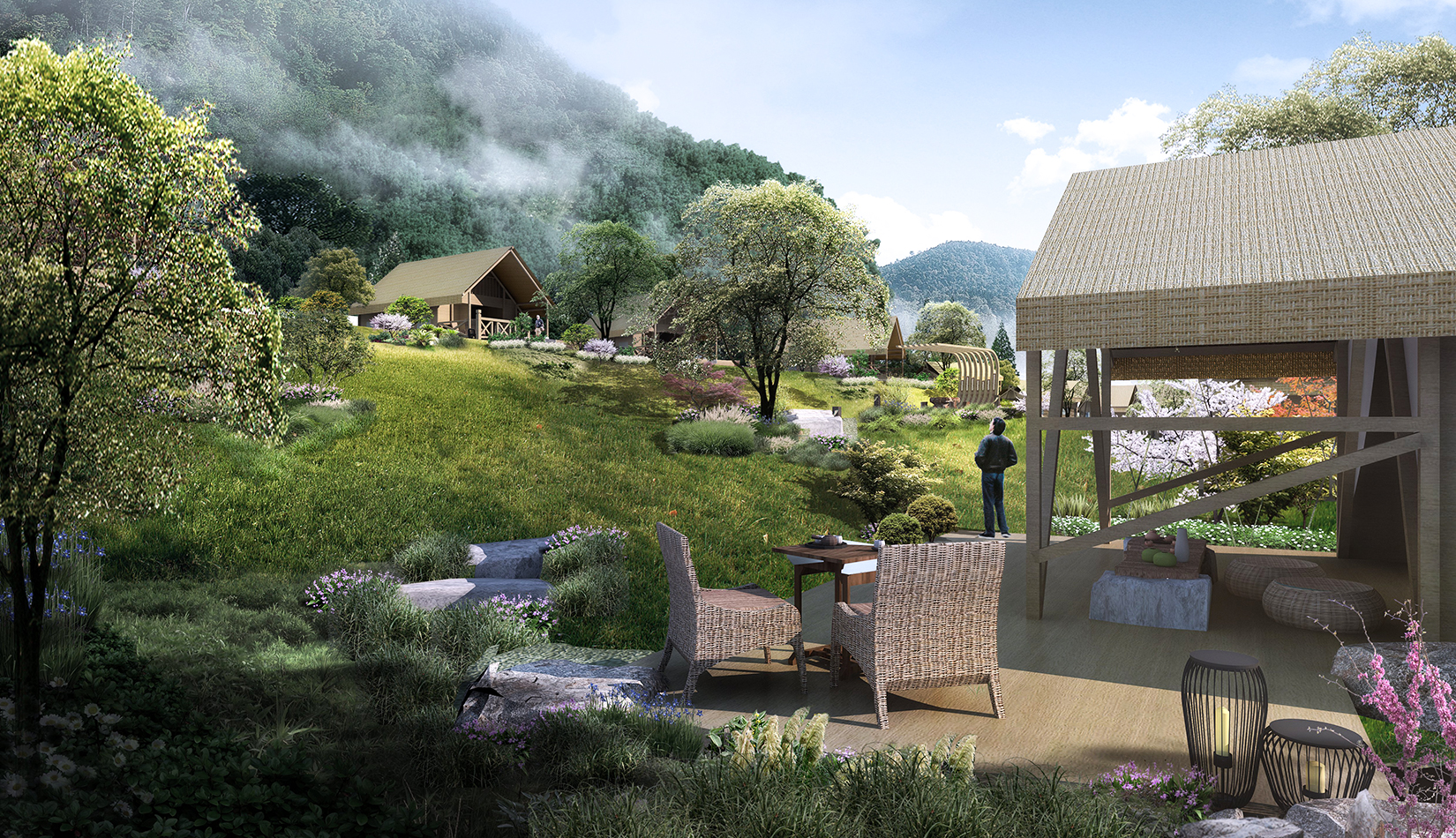 景觀設計從野奢度假酒店的“野”和“奢”兩字入手,融入荒野生態(tài)的設計理念,又要與場地相融合、與原生態(tài)相映、與當?shù)氐拿袼罪L情相交匯,突出當?shù)氐奈幕黝},強調(diào)高品質(zhì)的自然、野奢度假,從而打造出一個具備個性與特色,使游客能夠享受到自然野趣體驗的景觀環(huán)境。