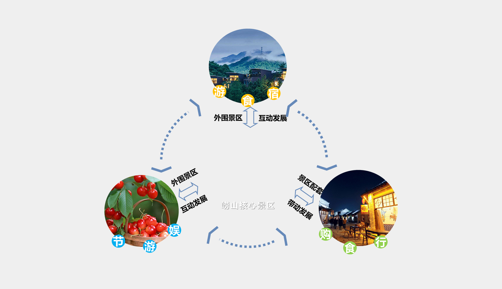 項目規(guī)劃目標:在國土空間規(guī)劃、生態(tài)修復城市修補背景下,重新定義村莊發(fā)展格局;依托嶗山風景區(qū)旅游品牌、聲譽、影響力,培育村莊獨特的旅游景點、活動項目,吸引外圍景區(qū)游覽客群;在旅游游線、服務設(shè)施、活動項目等方面,充分與嶗山主景區(qū)互動,打造分工明確、各有側(cè)重、各俱特色的旅游服務村落集群。
