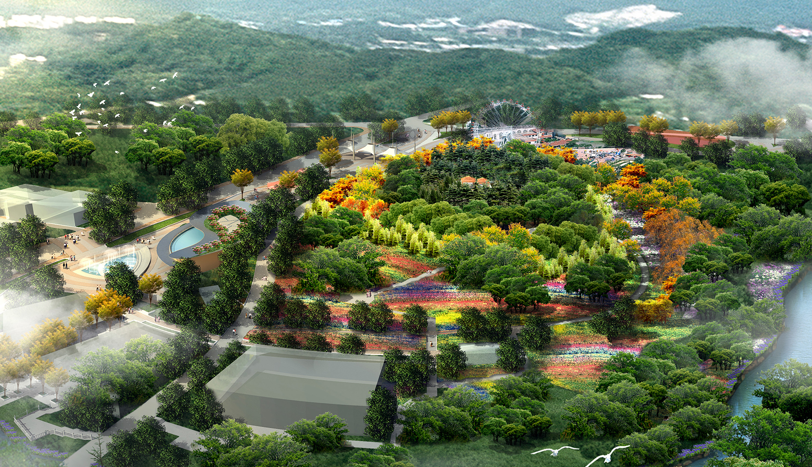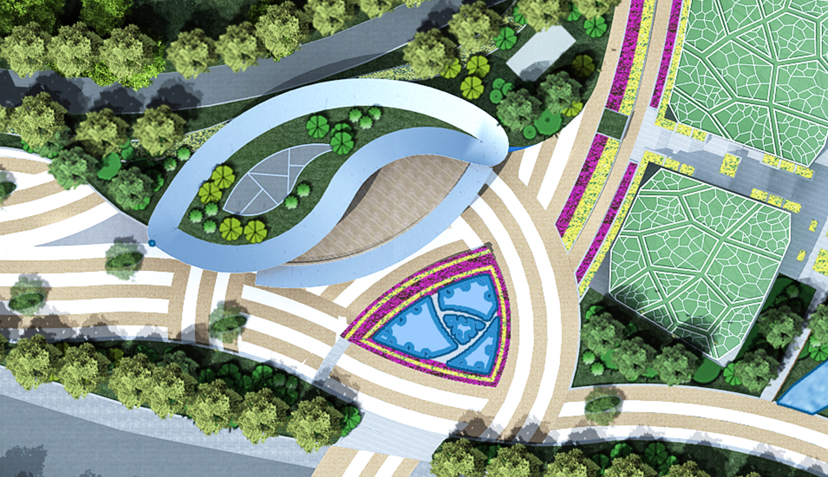 本案設(shè)計(jì)構(gòu)思“一花一世界”。月季、玫瑰,都屬于薔薇科薔薇屬的植物,但他們屬于不同的種。