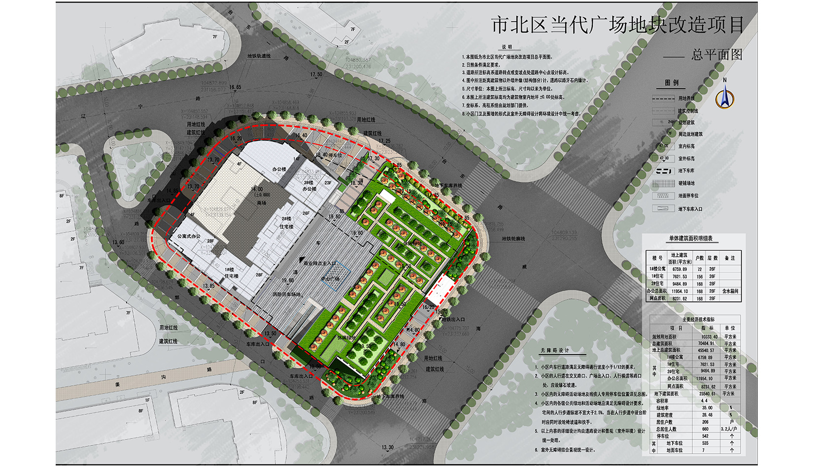 結(jié)合臺(tái)東商圈地理位置,在建筑南側(cè)設(shè)臨街廣場(chǎng),考慮視線的通透與遮擋,與帶狀綠地自然的溝通,達(dá)到廣場(chǎng)、建筑、景觀的完美結(jié)合。