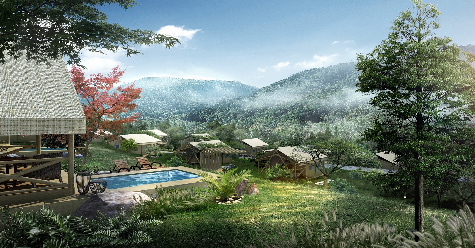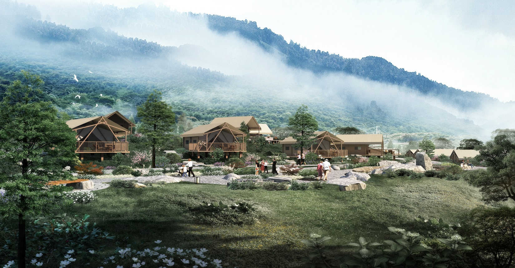 本項目的定位為自然、野奢的景觀風格。對于野奢度假酒店景觀環(huán)境設(shè)計遵從“野”“奢”兩點,融入荒野生態(tài)的設(shè)計理念,又要與場地相融合、與原生態(tài)相映、與當?shù)氐拿袼罪L情相交匯,突出當?shù)氐奈幕黝},強調(diào)高品質(zhì)的自然、野奢度假,從而打造出一個具備個性與特色,使游客能夠享受到自然野趣體驗的景觀環(huán)境。
